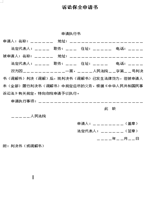 诉讼保全申请书